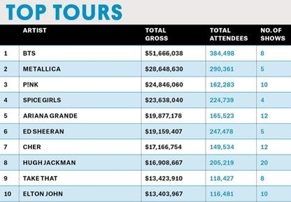 네 BTS가 미국 투어를 했던 5월에 세계 콘서트 매출 1위였습니다