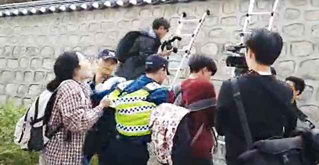 デモ隊のうち数人は背中にリュックを背負って塀を越えた。「凶器や危険物は所持していない」とは確信できない状況だった。にもかかわらず警察は、デモ隊のはしごを積極的に撤去しなかった理由について「デモ隊がけがすると思って無理はしなかった」と説明した。