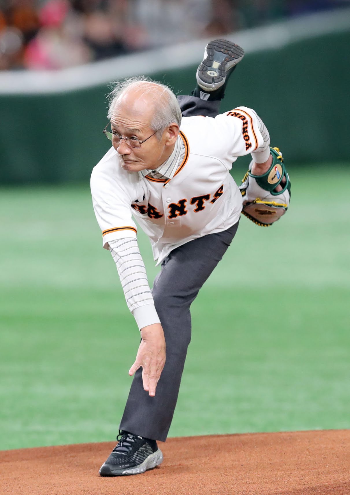 リチウムイオン電池開発でノーベル化学賞を受賞した旭化成名誉フェローの吉野彰さん(71)が始球式を務めた。