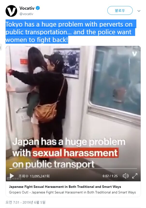 해외에서 일본남성의 치한 행위가 화제 같다