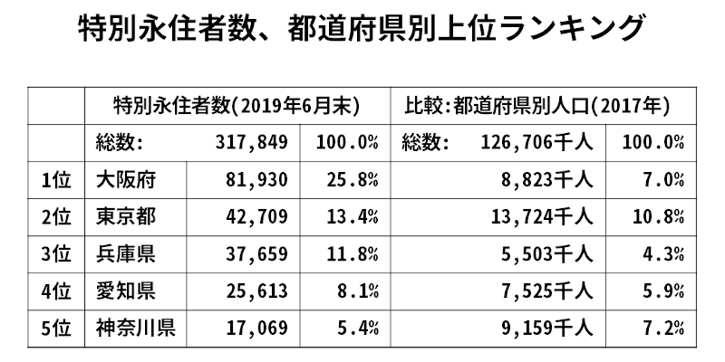 特別永住者の半分は大阪、兵庫、東京のどれかに住んでんのか。