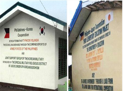 日本政府の支援でレイテ島に建設された小学校で、「日比協力」の印として校舎の壁面にフィリピン国旗と並んで描かれていた日章旗(日の丸)が無残にも塗りつぶされ、韓国国旗(太極旗)に塗り替えられていたのだ。
