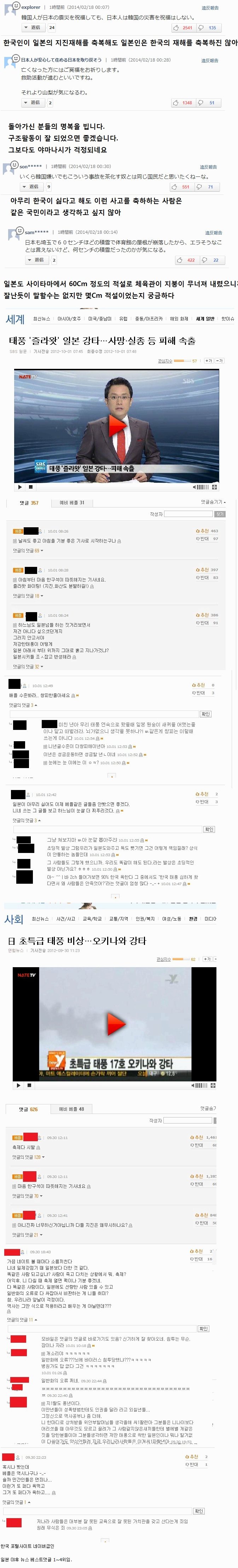 3.하느님도 일본놈들 하는짓 보면서 저건 아니다 싶으셨던것이다. 그러지 않고서 저 강한 태풍이 어떻게 일본 아래서부터 위까지 그대로 훑고 지나가겠냐? 일본놈들아 자지(penis)잡고 반성해라. 추천 386 반대91