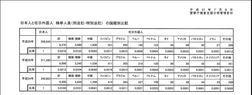 下の資料は日本の警察庁の統計データで