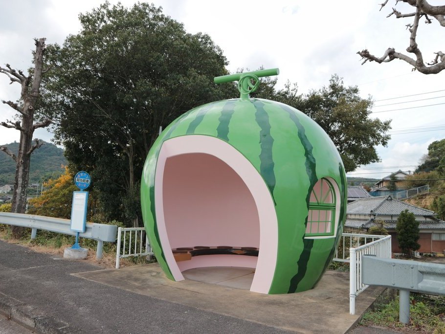 谷城郡が地域特産物メロンを模した異色のバス乗り場を作ったが