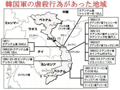 ベトナム戦争(1960年代後半から1970年代初め)時、米の同盟軍としてこの戦争に参戦した韓国軍が多くのベトナム女性を強姦(ごうかん)し、彼女たちを韓国兵のための慰安婦として強制的に働かせていた。