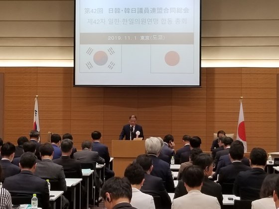 両議連は毎年、合同総会を持ち回りで開催している。今年は9月に開催される予定だったが、韓日関係が悪化した影響により延期になった。今回は韓国側議員41人と日本側議員110人が参加した。