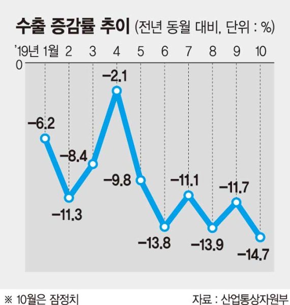 産業部、10月の動向輸出14.7%↓45ヶ月ぶりに最大