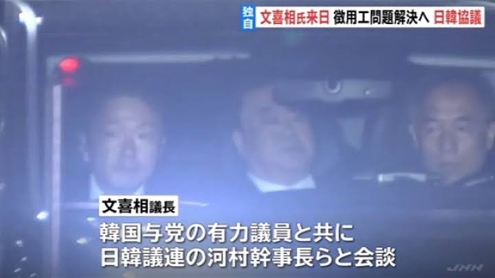 文議長は、ホテル到着後、早速、日韓議員連盟の幹事長を務める自民党の河村元官房長官らと会談した。出席者によると、文議長は「元徴用工をめぐる問題は韓国の国会で解決策を示し、韓国政府を動かしたい。日本側に迷惑をかけないようにしたい」などと話したという。