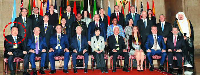 来ないと言ってたから椅子用意しなかったくらいしないとwww>サント議長は、会議参加者との集合写真を撮る時もドア議長を最前列端数に配置した。
