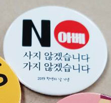 バッジには「NOアベ 買いません 行きません」「2020年国会議員選挙 青少年も投票しよう」というスローガンが書かれていた。「気候危機 非常事態を宣言せよ」「全ての人権が尊重される学校」といった文言が書かれたバッジもあった。ある生徒は「『学生の日』とは関係ない文言が書かれていて、おかしいという思いを抱いた」と語った。