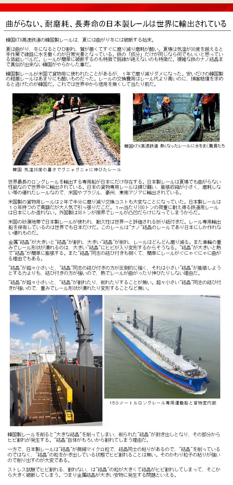 韓国のレールを米国に輸出したら、1年ですり減り損害倍書を求められるが韓国は逃げたw