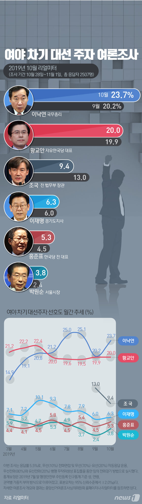 複数の疑惑でケチがついた3位曹国前法務長官と、公職選挙法違反で当選無効となっている李在明京畿道知事は1回キャンセルして、次の大統領選挙では候補者を李洛淵国務総理1本に絞るんじゃ無いかな?