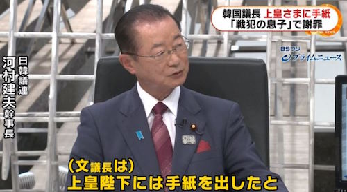 韓国議長 上皇さまに手紙 「戦犯の息子」で謝罪