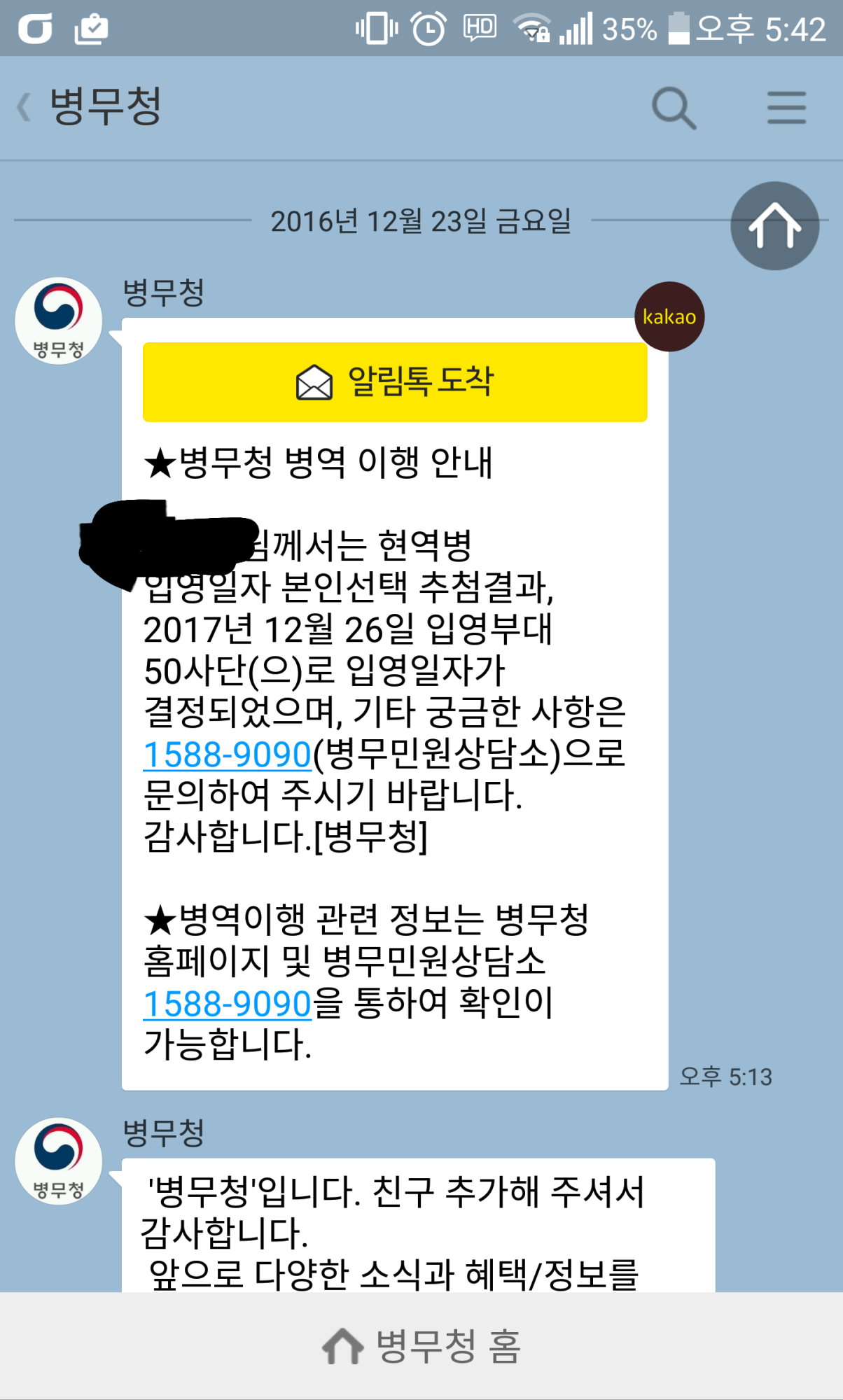 예전엔 저런 게 우편으로 날아왔는데 요즘엔 카카오톡으로 날아오나 보네요.
