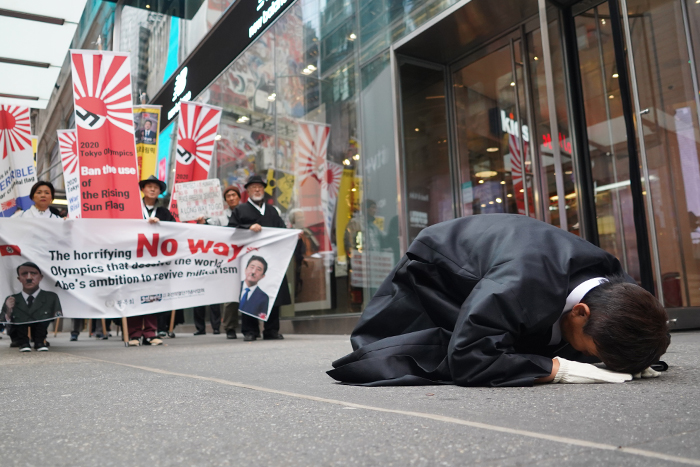 韓国人が一番旭日旗を使ってるのだが?"도쿄 올림픽 욱일기 사용 반대"..뉴욕서 삼보일배 시위