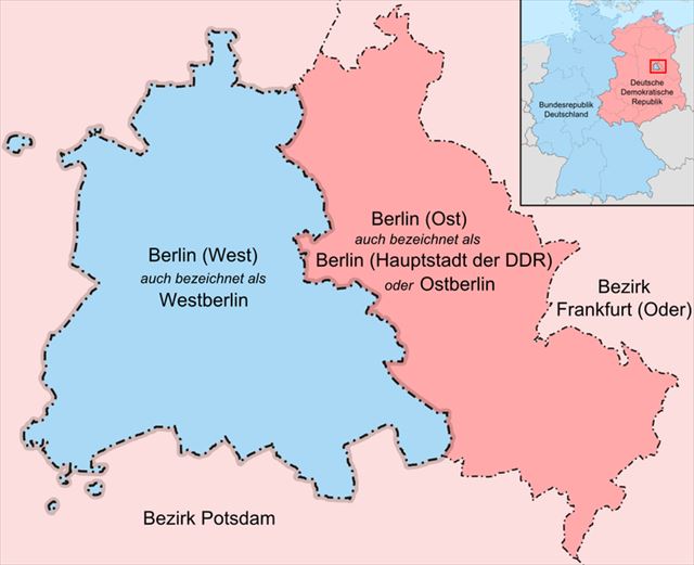 ベルリンは東ドイツ国内にあり、ベルリンの中でさらに東西に分かれていた。