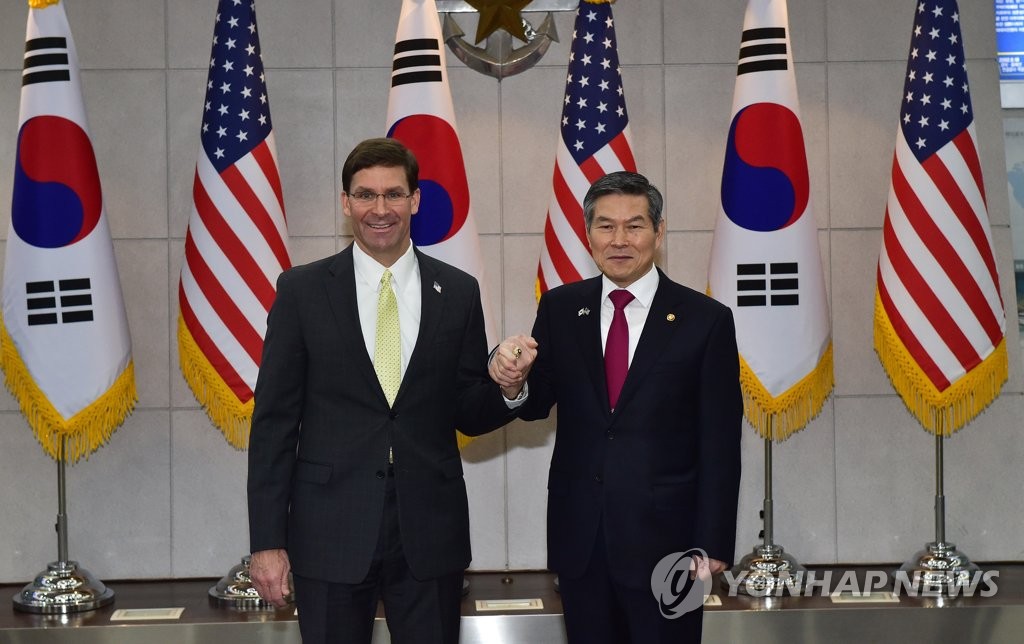 米国のエスパー国防長官は15日、訪問先のソウルで鄭景斗国防相らと米韓定例安保協議(SCM)を開催した。両氏は協議後の共同記者会見で、23日午前0時に失効する日韓の軍事情報包括保護協定(GSOMIA=ジーソミア)は安全保障上、重要だとの認識で一致。ただ鄭氏は、韓国側が破棄決定を見直すには、日本の輸出規制強化の撤回が前提となるとの従来からの姿勢を改めて示した。