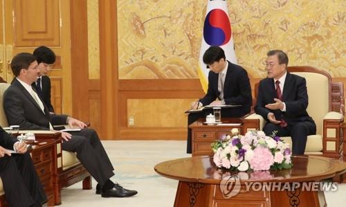 韓国の文在寅(ムン・ジェイン)大統領は15日、青瓦台(大統領府)でエスパー米国防長官と会談し、失効期限が迫っている韓国と日本の軍事情報包括保護協定(GSOMIA)と関連し、安全保障上信頼できないという理由で対韓輸出規制を強化した日本と軍事情報を共有するのは難しいとの立場を改めて伝えた上で、韓米日間の安保協力は重要で持続的な努力を傾けるとの意向を示した。