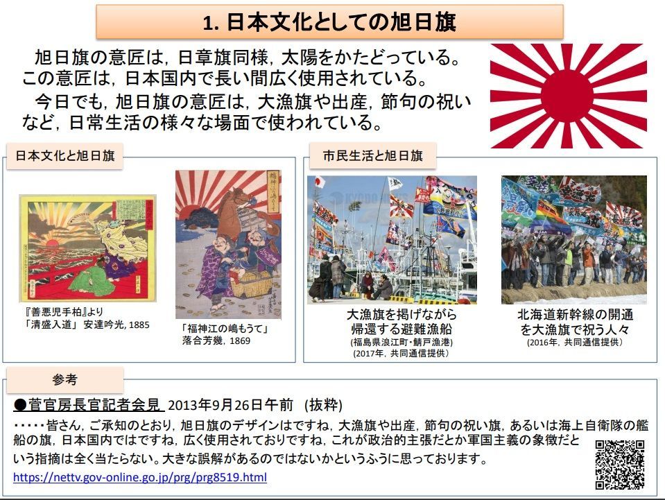 実際、終戦から70年以上、国際社会から旭日旗への反発はなく、韓国は最近になって政治的な利用のために旭日旗への反発を作り出した。