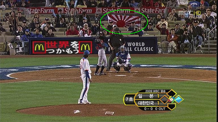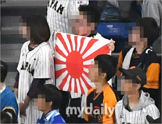 野球の国家対抗戦プレミア12スーパーラウンド韓日戦が開かれた16日、日本の東京ドーム観覧席で旭日旗を手にしていた50代男性を目撃した。スポーツ現場取材一筋で10年を越えたが、競技場で旭日旗を直に見たのは初めてだ。男性に近付いて「韓国から来た記者だが、少し話をしたい」と求めたが拒絶された。男性は写真撮影も拒否した。韓国野球委員会(KBO)は世界野球ソフトボール連盟(WBSC)に対し、競技場に旭日旗が登場したことについての制裁を要請した。WBSC側は「現在紛争状況でなく、国際オリンピック委員会(IOC)でも禁止していない事項で制限することはできない」とし「放送局側に問題になる(旭日旗)映像が映らないように要請したい」という回答があるのみだった。