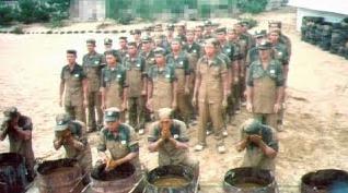 사진은 1999년에 찍힌 것이다. 2001년 이후, 인권 문제 등으로 이러한 훈련은 사라졌다고 전해진다.親北派の大統領選んで、平和的に北に統一してもらえばよくね?