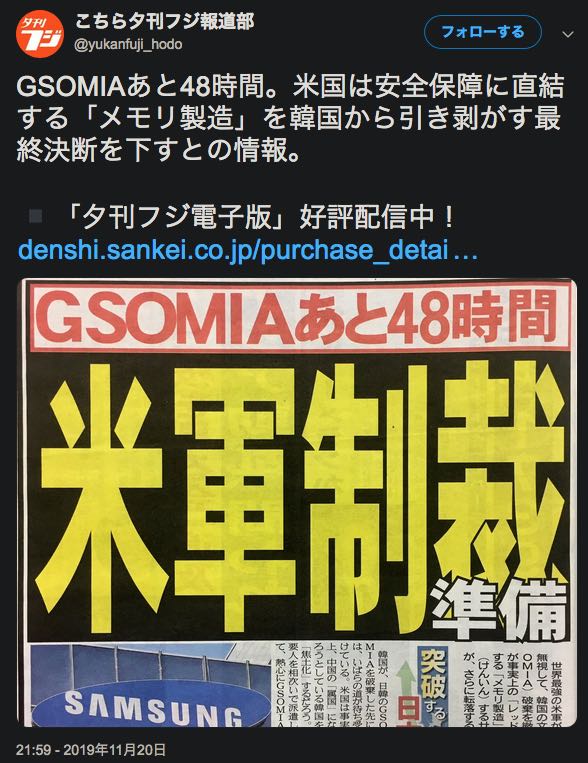さてGSOMIAの破棄が完了するまで、残り36時間余りとなりました。