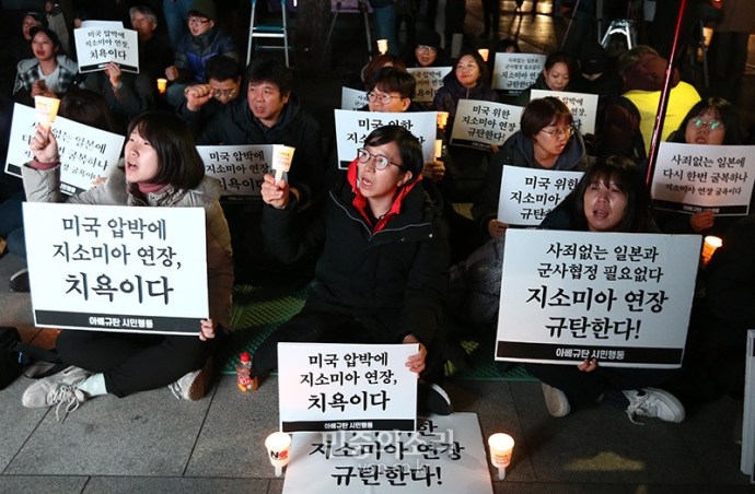 怖いの?これまでGSOMIA破棄を主張してきた進歩性向の市民社会団体が一斉に反発する声明を出した。