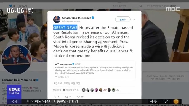 ヘリテージ財団のブリースクリムナー上級研究員のTwitterは内容的には「文大統領が国民感情よりも安全保障を優先したことを評価する。日本も対話だけしないで理に合わない輸出規制を中断しなければならない」とあります