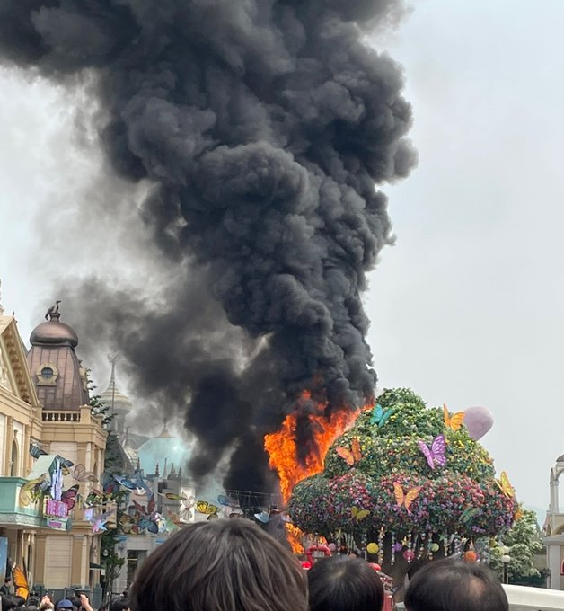 불이 난 조형물은 에버랜드 광장에 설치된 높이 13m의 '매직트리'이다.