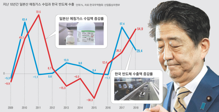 일본이 수출규제 빌미로 내세운 ‘특정 시기에 한국의 에칭가스 대량 발주’는 반도체 시장 호황과 설비 증산 때문인 것으로 나타났다. 일본은 갑자기 한국 기업들이 많은 양의 에칭가스(고순도 불화수소)를 수입했고, 이는 북한으로 흘러갔을 것이란 주장을 펴고 있다. 한국의 전략물자 관리체계를 믿지 못한다는 주장을 하기 위해 사실관계를 무리하게 왜곡한다는 비판이 나온다.