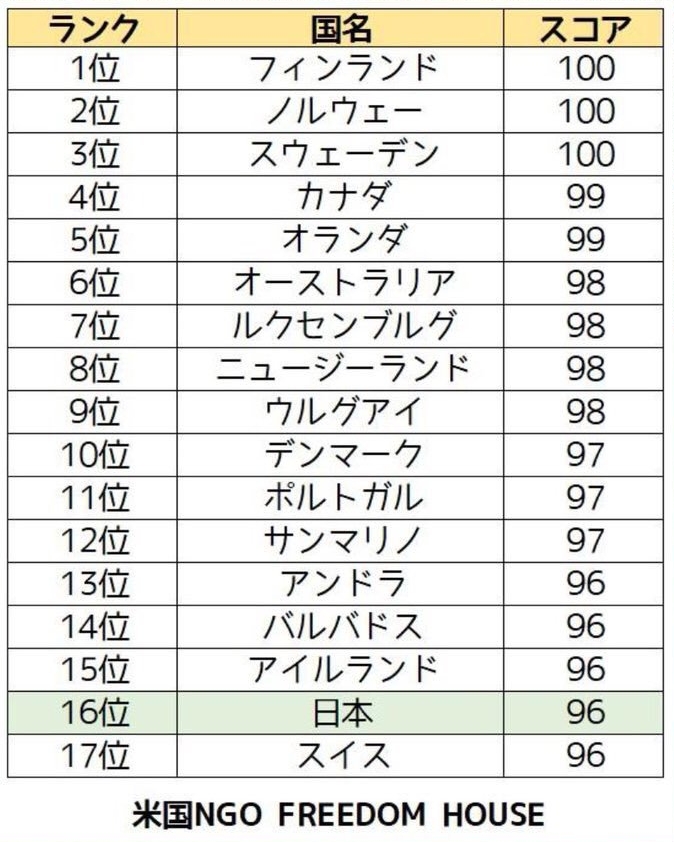 つまり、捏造嘘吐き報道の自由度がナンバーワン💋