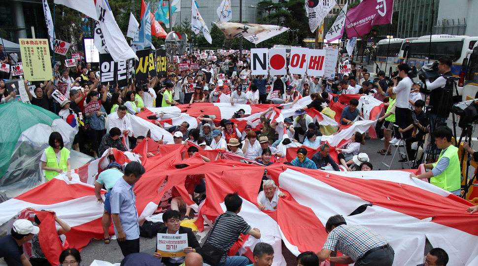 ムン・ジェイン政府は見ましたか? 現夏にユニクロの前で汗だくになりながらプラカード持って不買運動をした彼らの行動に真正性が感じられないのですか?真夏のアスファルトの上で国の主権と、自尊心のために集まったノージャパン集会を見ましたか?