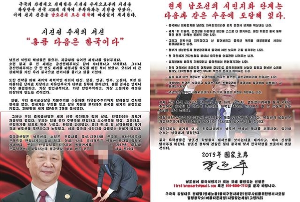 「香港の次は韓国である」と、韓国が中国の植民地になるという内容の壁新聞を貼り付けた。