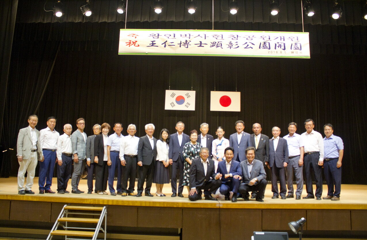 日本に初めて漢字と儒教を伝えたとされる、百済の王仁博士(わにはかせ)を顕彰する公園が2018年8月5日(日曜日)、竹原地区に開園し、市民や関係者が参加して記念式典を行いました。