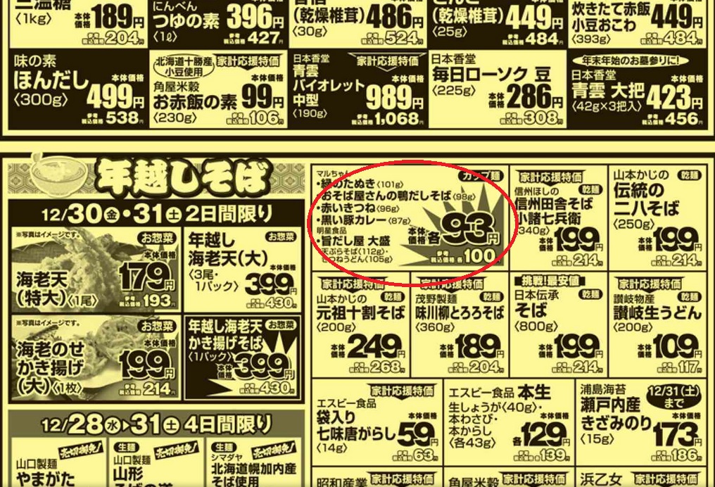 総じて100均よりスーパーの方が安いという罠。>>1インスタントラーメンはそれの半値で売られてます。