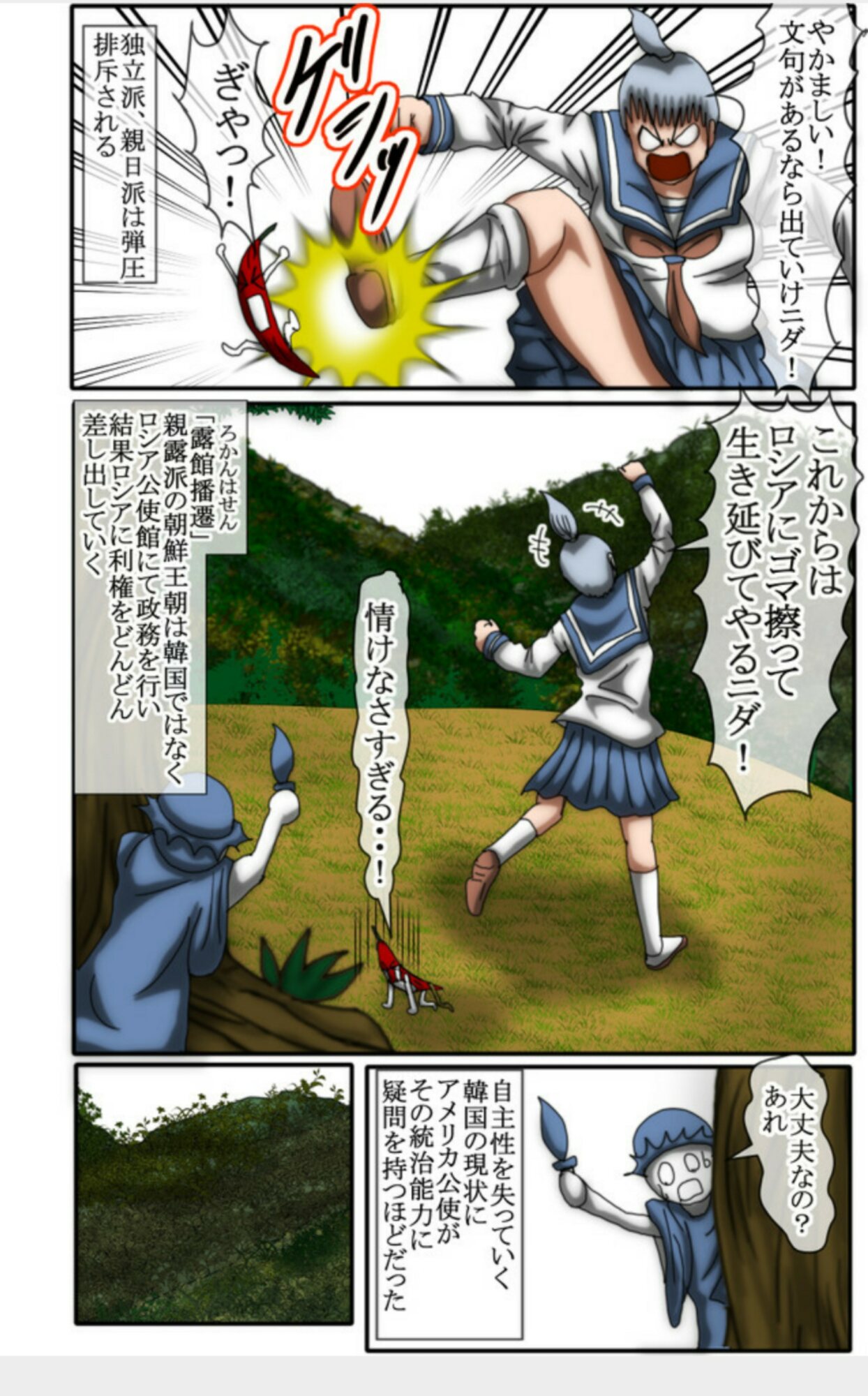 韓国は裏切者の悪の手先日本は西欧列強の脅威に対抗しようと徳川幕府を打倒して明治維新を行い