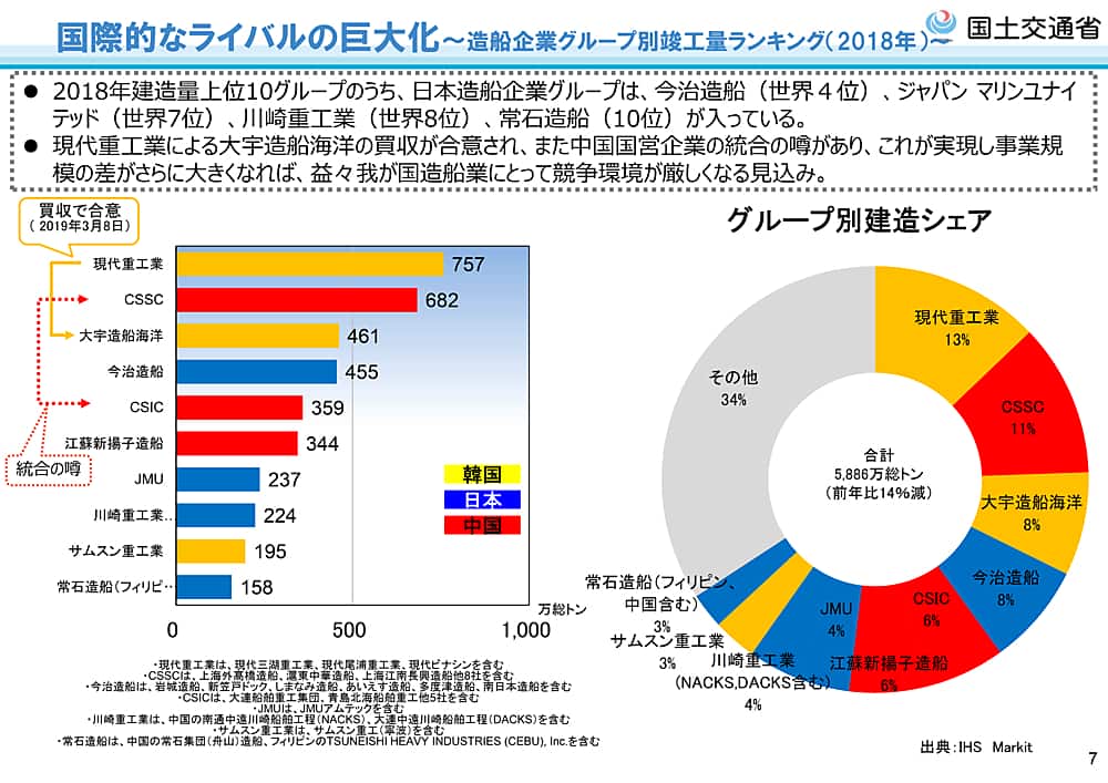 しかし、規模粛清をよぎなくされ今では韓国の1/10くらいだ。日本の造船業は終わった。日本の全造船企業を合算しても韓国内3位にも入れない。