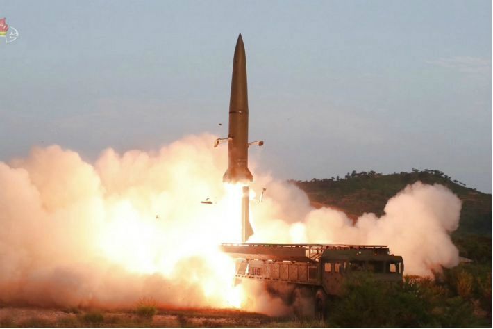 북한은 아베 신조 일본 총리가 초대형 방사포 시험 사격을 ‘탄도미사일 발사’라고