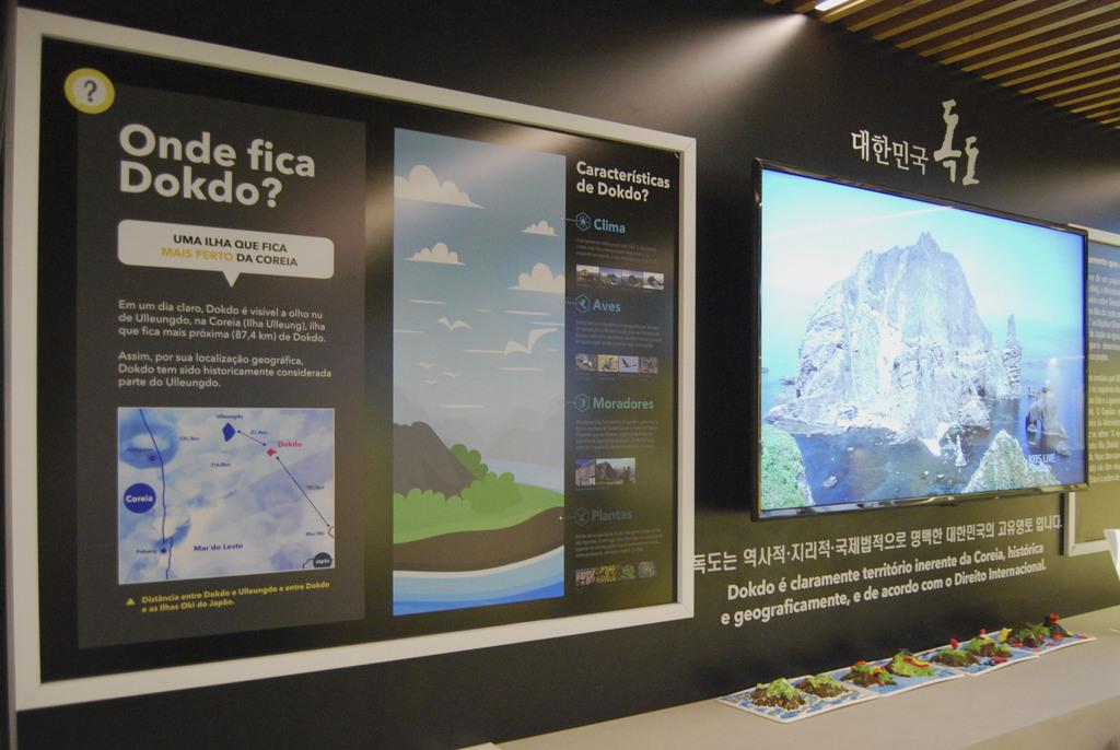 展示では、竹島の写真や地図の下に「独島は明確に韓国固有の領土である」などの説明文が韓国語とポルトガル語で記されている。日本総領事館は「極めて遺憾であり、日韓関係をさらに悪化させる」との抗議文をセンターに送り、韓国の総領事館にも対応を求めた。