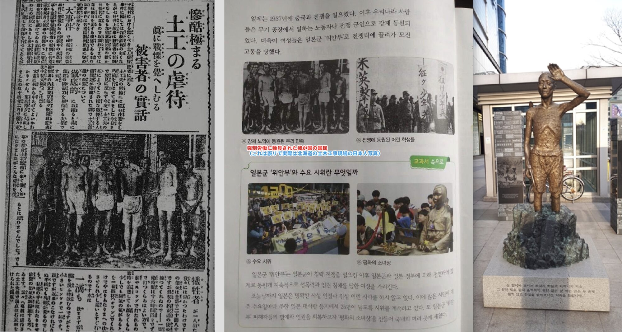 彼らは「教科書などに出ている徴用関連写真は1926年9月9日に日本の旭川新聞に掲載されたものであり、写真の登場人物は建設現場に監禁され強制労働に苦しめられた日本人10人のうちの1人」とした。イ・ウヨン研究委員は「銅像の姿のようにやせこけて肋骨が浮き出ている写真の中の徴用労働者はこの日本人が唯一だ」と説明した。