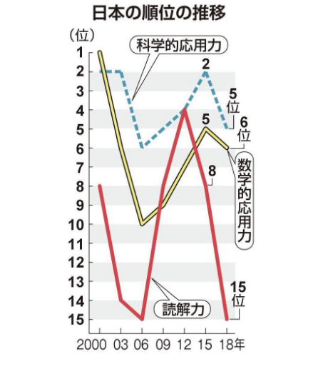 国際的な比較に参加し始めた2000年以来、18年間で最も低かった。