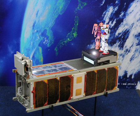 2020年の東京五輪・パラリンピックに向け、大会組織委員会と宇宙航空研究開発機構(JAXA)などが地球周回軌道への放出を計画しているアニメ「機動戦士ガンダム」の模型を載せた小型人工衛星が完成し、3日、レプリカが披露された。