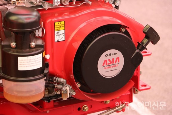 2019年、金堤農業機械博覧会に展示されたアセアテックの多目的管理機〔※小型の耕運機〕『AMC-900』。この機種のエンジンは『GB290』で、三菱エンジンの『GBシリーズ』の中の1つだ。 しかし、『GB290』のエンジンには三菱ではなくアセアテックのCI〔※Corporate Identity:企業イメージ・ロゴ〕が表示されていた。
