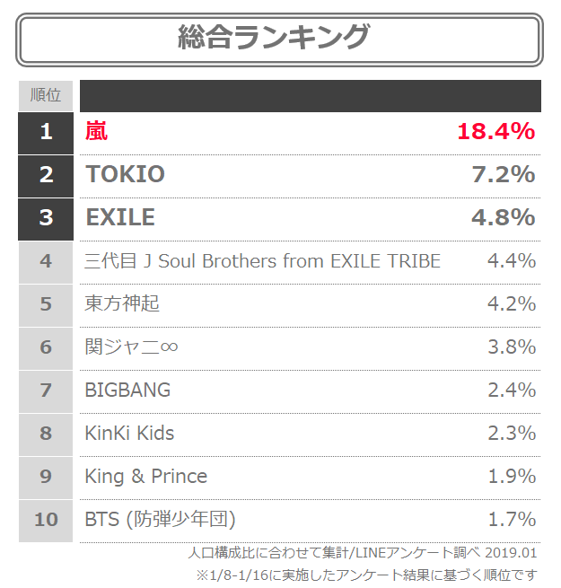 男性アイドルグループ 最新の人気ランキング 2019 全国62万人が選ぶ頂点は!?