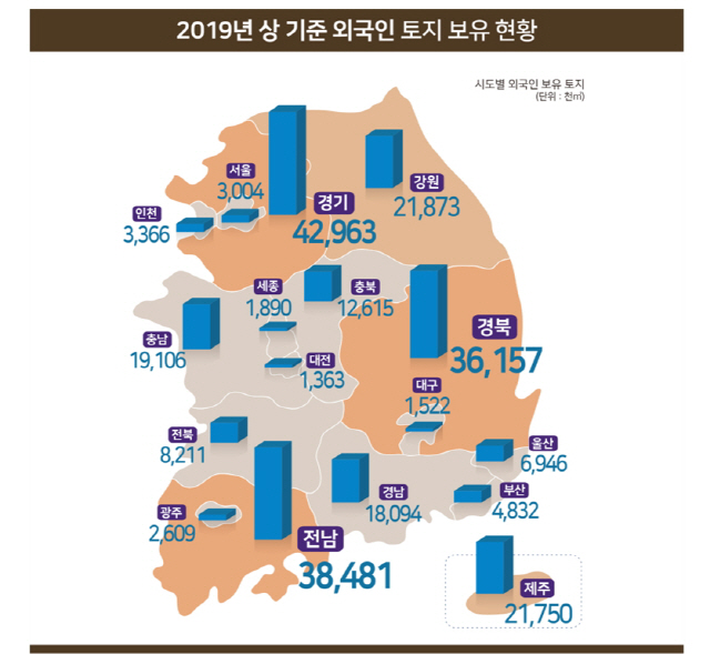 韓国、上半期の外国人が保有している国内の土地245㎢...ソウルの約5分の2サイズ