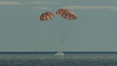 その後、宇宙船はパラシュートを開き、速度を低下させて太平洋への着水に備える。海上では米海軍の艦艇が待機し、乗員とカプセルを海から引き上げる。カイカイ韓国人「全部CGニダ!」