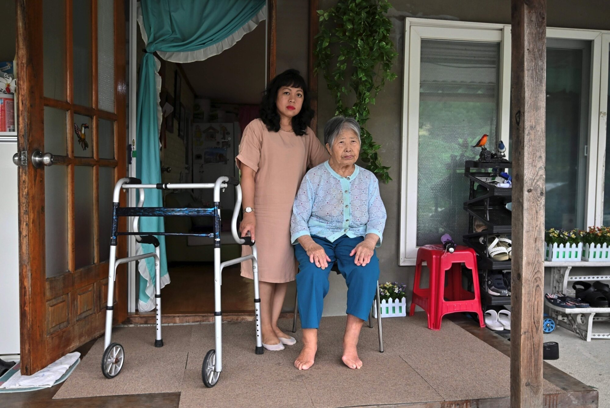 故郷フィリピンから何千キロも離れた韓国の山村で、エマ・スマンポン(Emma Sumampong)さん(48)は、年老いた義理の母親(89)を介護しながら、夫と子どもたちの世話をし、一家の農場で働き、さらにパートタイムの仕事もこなしている。