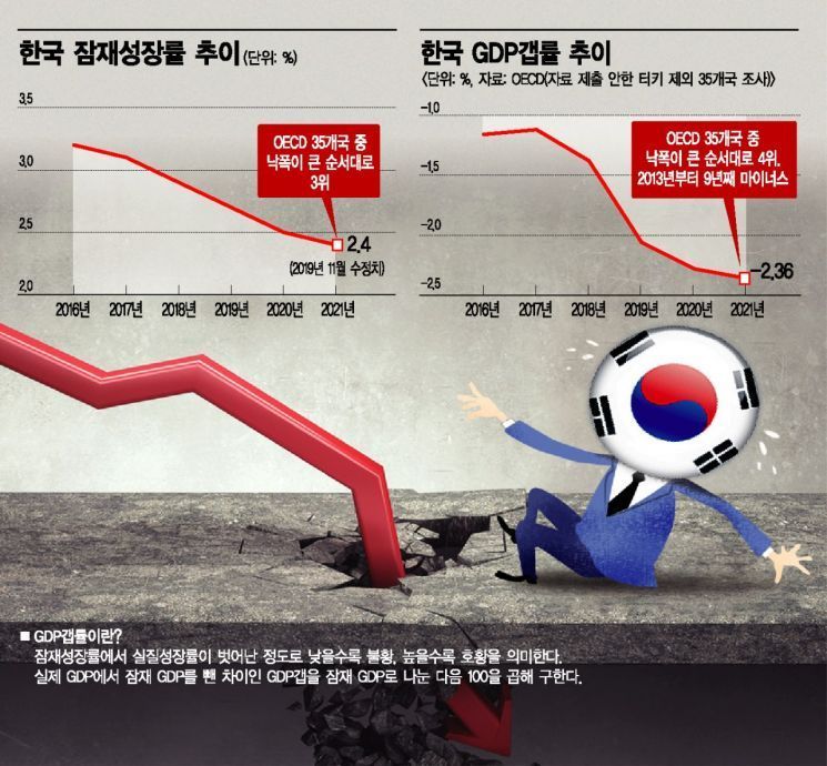 経済開発協力機構が韓国経済の基礎体力的である潜在成長率が2021年までに急激に低下し不況も時間経過でますますひどくなると予想した。