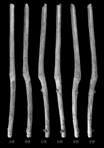 木簡は長さが約74.2センチで、曲がった木の表面を整えて作った6面にわたって文字が書かれている。